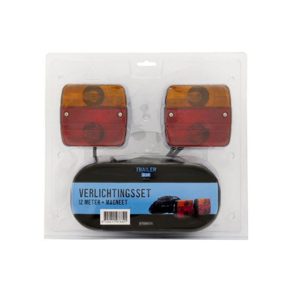 Set bestaande uit twee meerkamer achterlichten, elk bevestigd op een sterke magneet. Compleet met 12 meter kabel met 7-polige stekker. Incl. lampjes (2x 21W bol/2x21/5W bol).