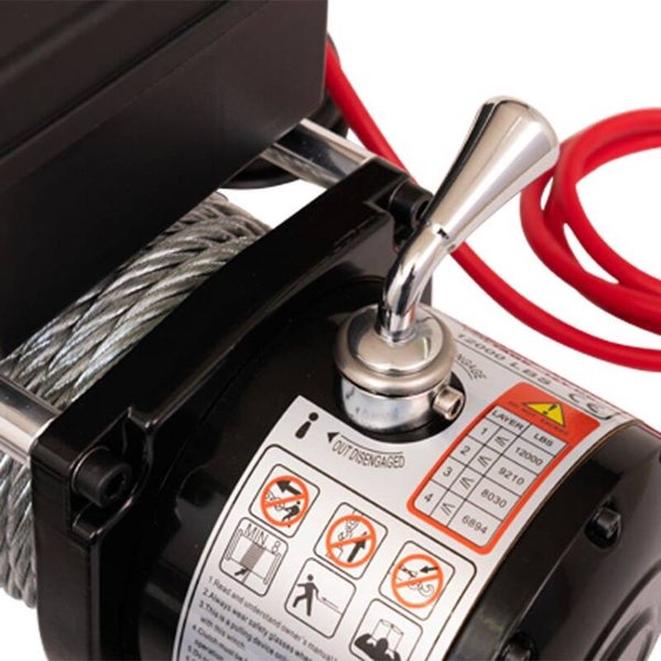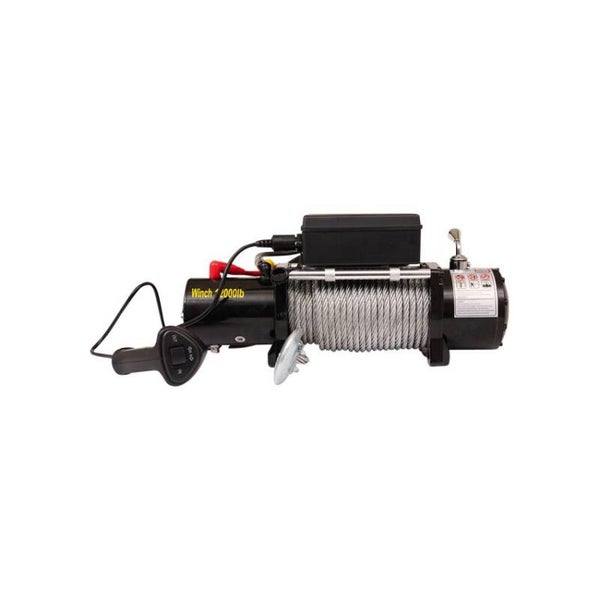 Kabellier 12 Volt, horizontale trekkracht circa 5454 kilo, (12000 Lbs).
