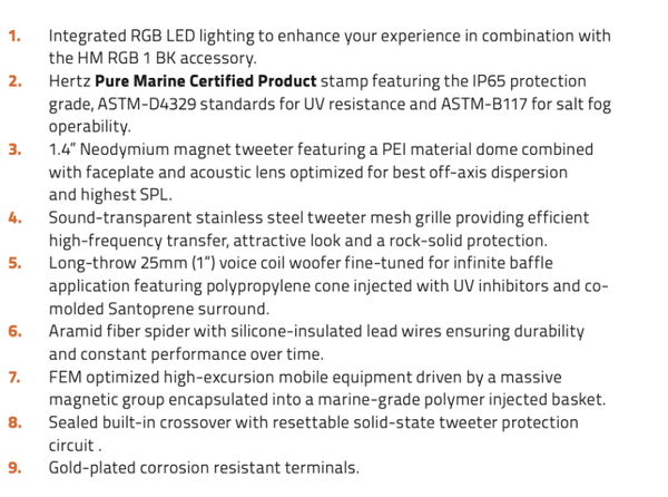 Hertz HMX 6.5 S-LD-6.5"4Ohm Powersports COAX RGB LED Speaker