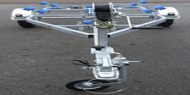 Bij de gepatenteerde trailers zijn namelijk de 60mm kielrollen vervangen door twee naast elkaar geplaatste wielen van 260mm, en de kimrollen aan de zijkant zijn vervangen door grote loopwielen van 400mm.